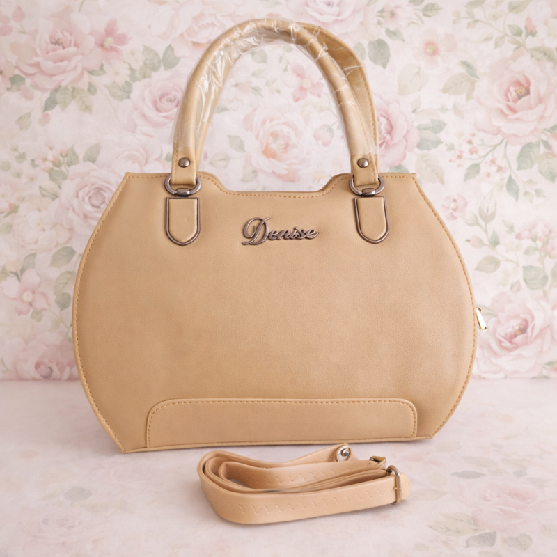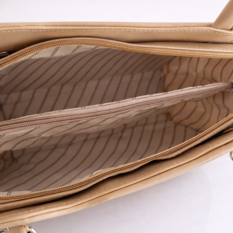 Beige Structured Ladies Handbag with Detachable Sling Strap