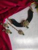 A royal black beads choker set designed with green kundan stones and sparkling crystals. Perfect for weddings, parties, and festive occasions.