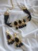 Black Beads Kundan Choker Necklace Set with Matching Earrings