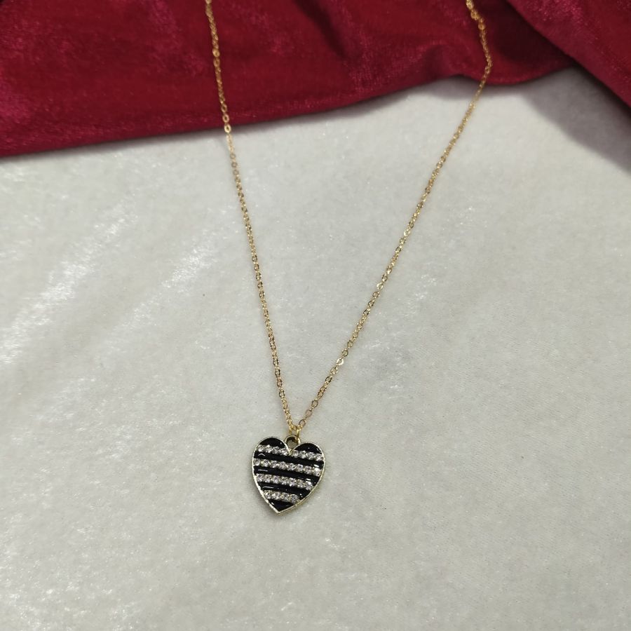 A stylish heart-shaped pendant chain featuring black enamel stripes with sparkling stone detailing. Perfect for daily wear, casual outings, and gifting someone special.