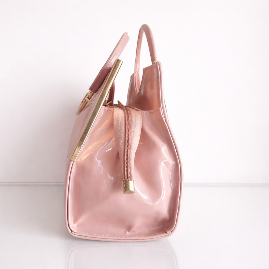 Blush Pink Elegant Women’s Handbag with Gold Handle & Sling Strap