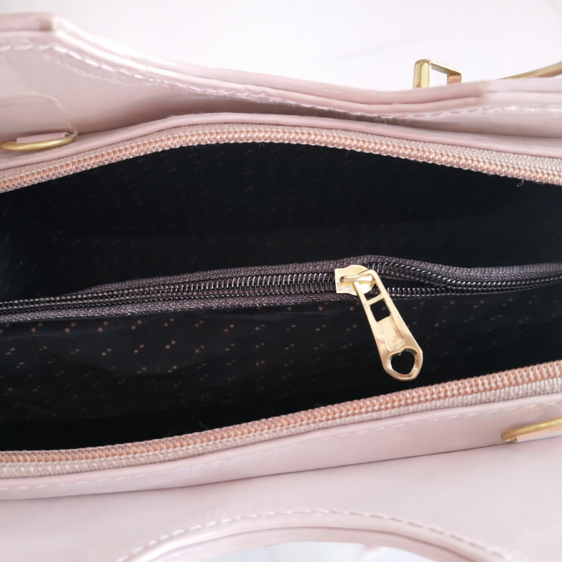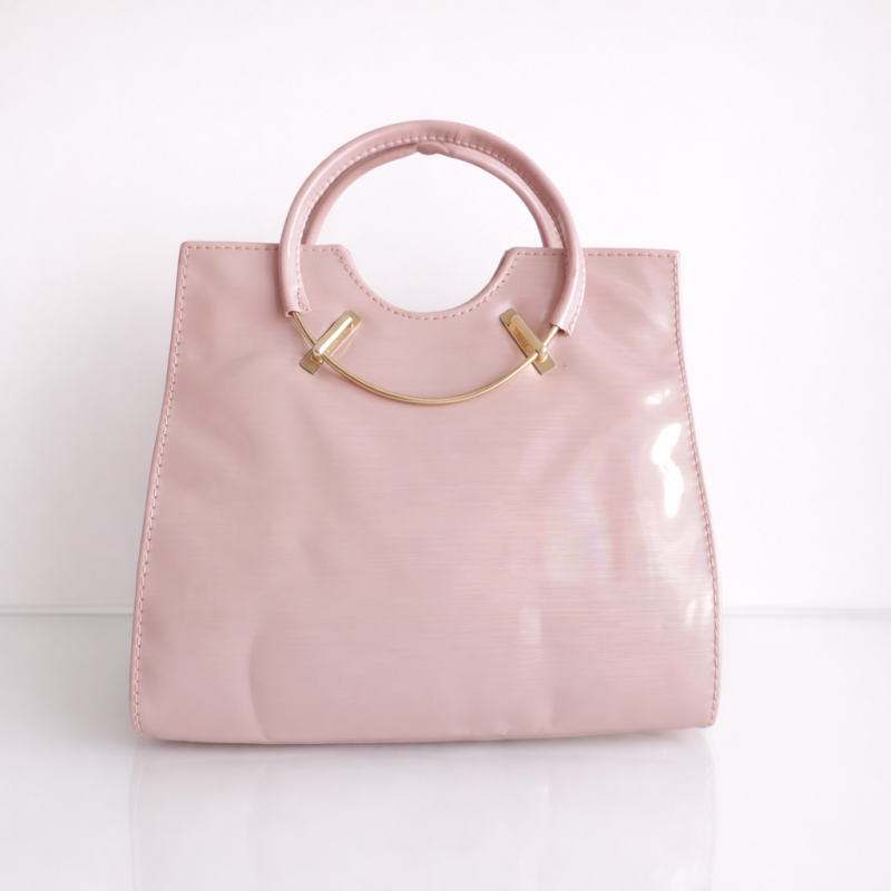 Stylish blush pink women’s handbag with premium finish, gold-tone handle detailing, and detachable sling strap—perfect for daily and party wear.