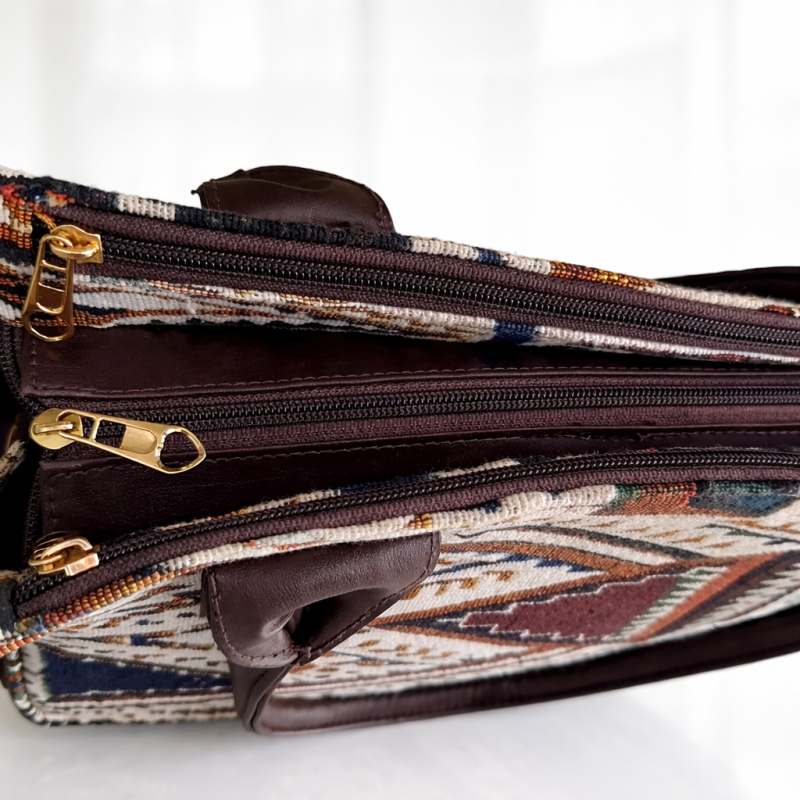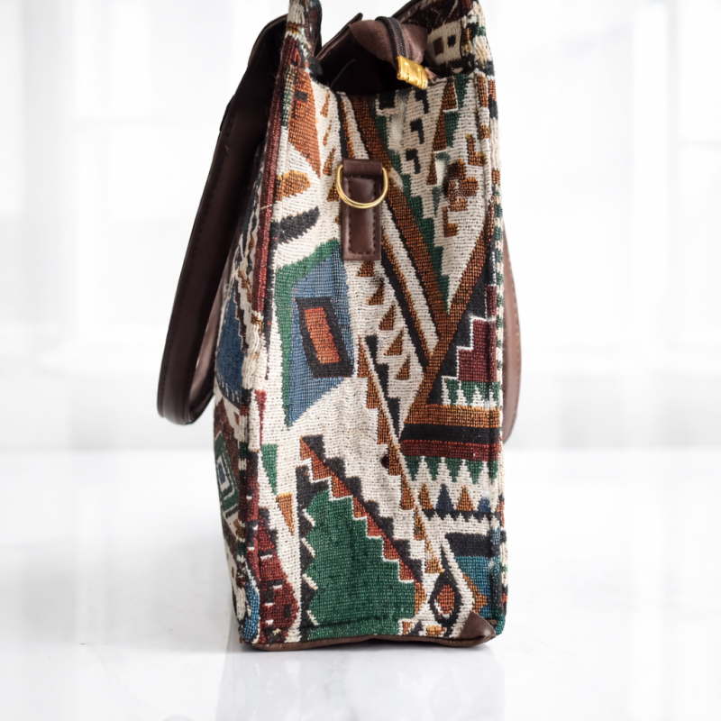 Stylish boho geometric print tote bag with matching sling pouch and detachable strap. Spacious, trendy and perfect for daily use, office, shopping and travel.