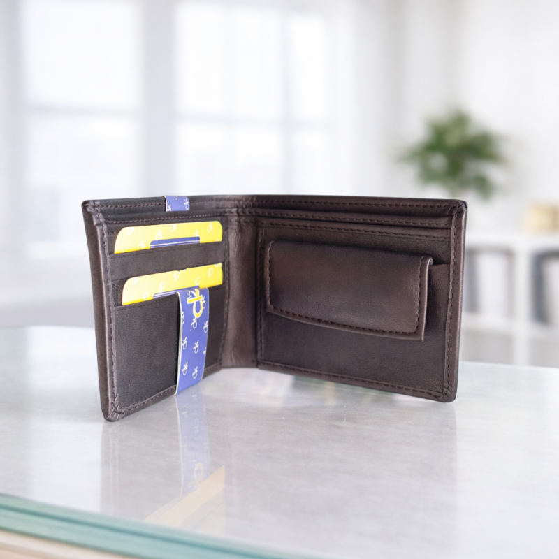 Premium brown leather bi-fold wallet with embossed CK logo. Slim, stylish and perfect for daily use with a classy modern look.