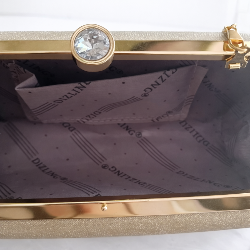 Champagne Gold Glitter Box Clutch with Detachable Chain Strap