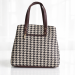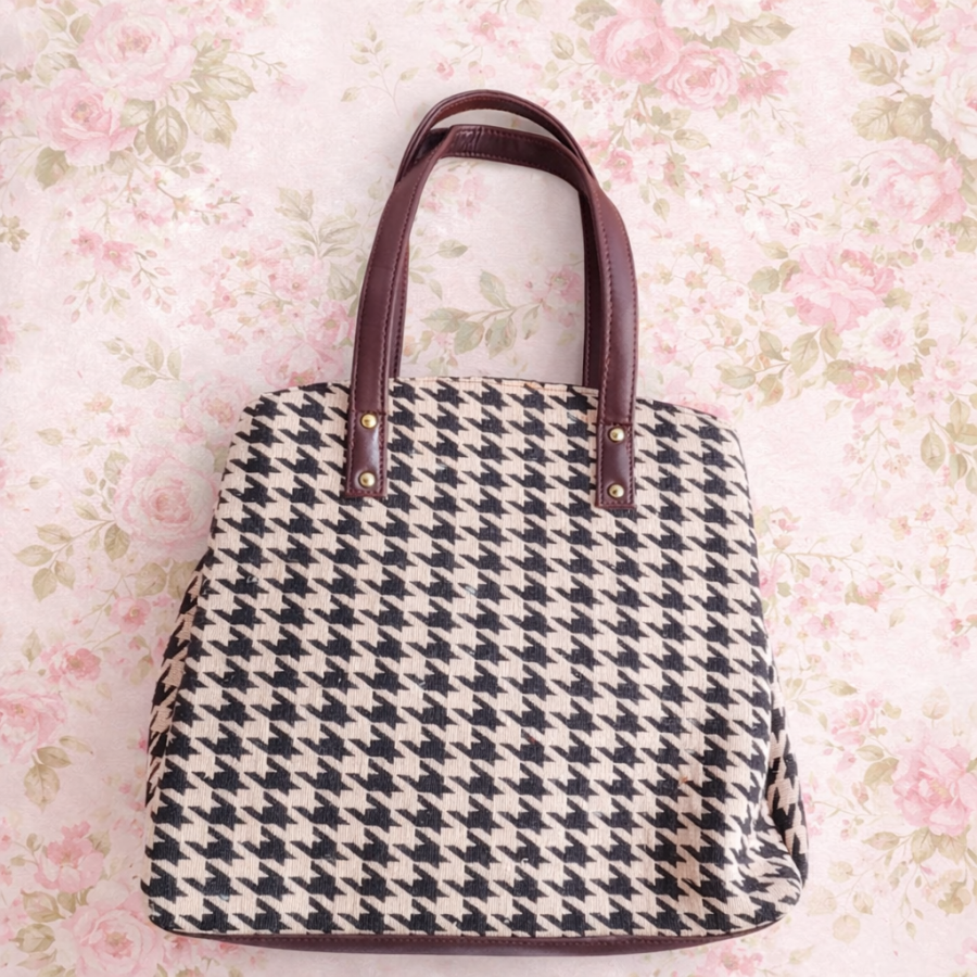 Classic Houndstooth Print Tote Handbag with Brown Handles