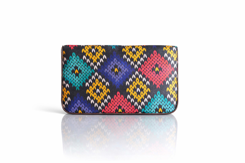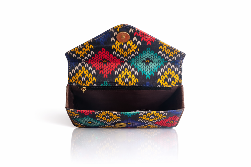 Upgrade your accessory collection with this Colorful Heart Pattern Envelope Sling Bag for Women. Designed with a vibrant knitted-style heart pattern in multiple colors like red, yellow, teal, and white on a black base, this bag gives a playful yet elegant look.