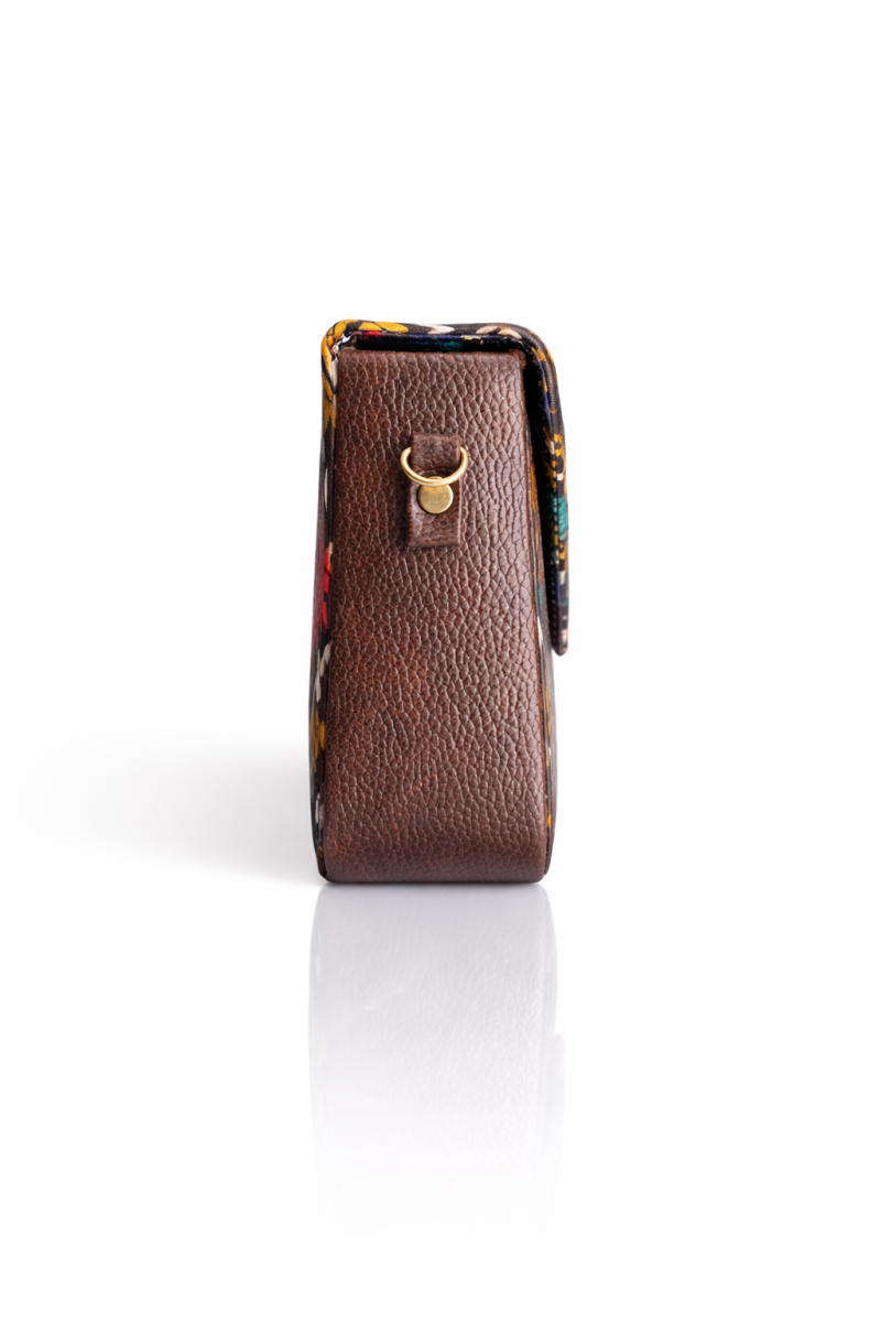 It comes with a detachable and adjustable brown strap, allowing you to use it as a sling bag, crossbody bag, or clutch according to your style preference. Despite its compact size, the bag offers enough space to carry essentials like mobile phone, cash, cards, keys, and small cosmetics.