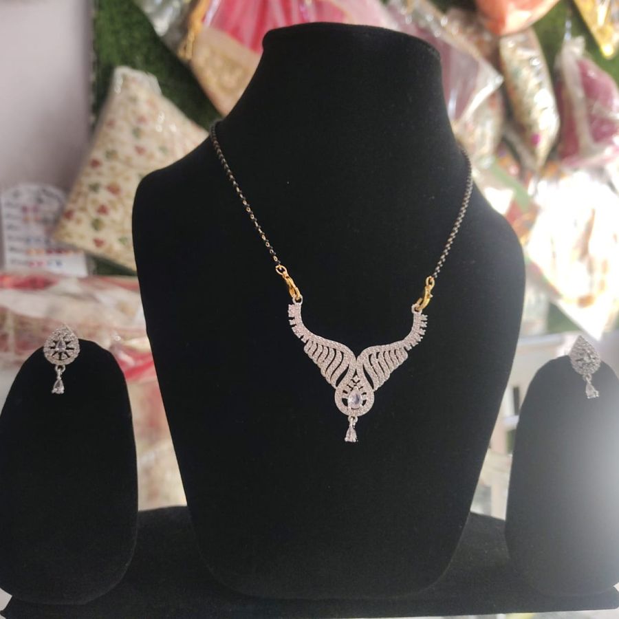 Designer Silver AD Mangalsutra Necklace Set with Earrings