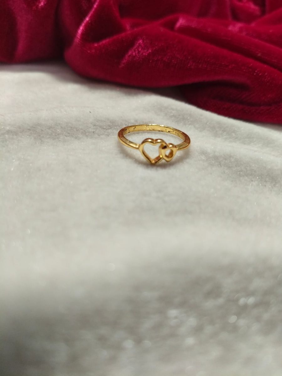 A stylish double heart gold ring for women with a simple and elegant design. Perfect for daily wear and gifting on special occasions.