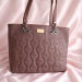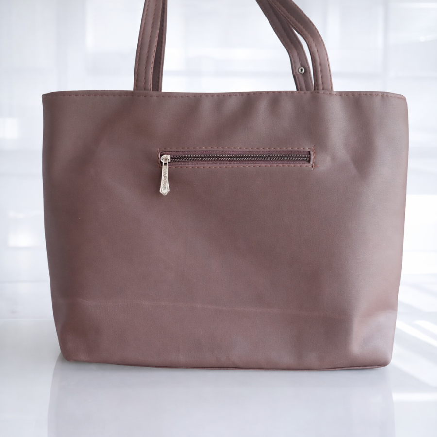 Premium brown textured tote handbag with stylish stitched pattern and sturdy shoulder handles. Perfect for office, daily use, shopping and travel.