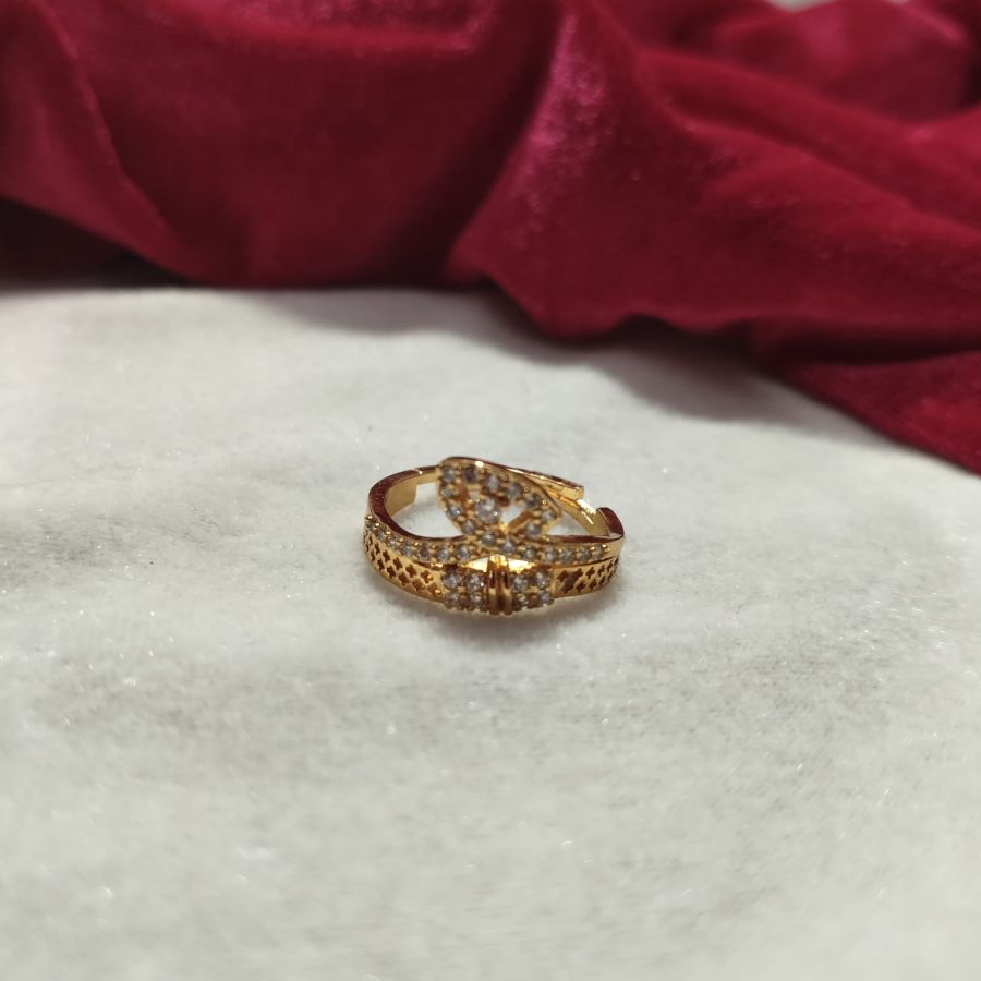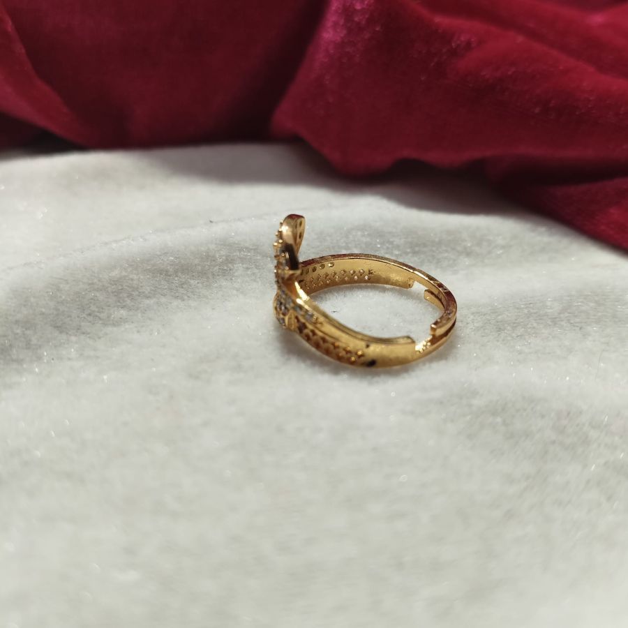 A beautiful gold-plated AD ring with a stylish cross-twist design and sparkling zircon stones, perfect for parties and daily wear.