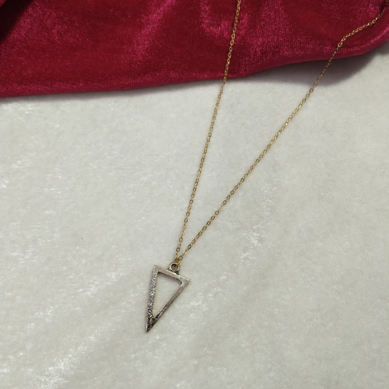 A chic gold geometric triangle pendant necklace featuring delicate crystal accents on a fine gold chain. Perfect for daily wear, office styling, and modern minimalist fashion.