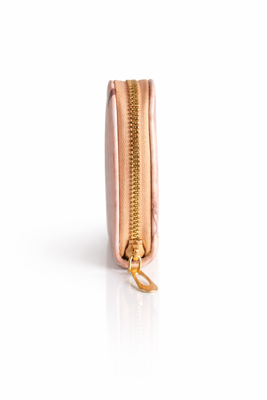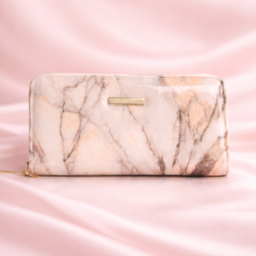 Premium marble print women’s zip wallet in soft peach beige tone with gold detailing. Stylish, spacious and perfect for daily use and gifting.