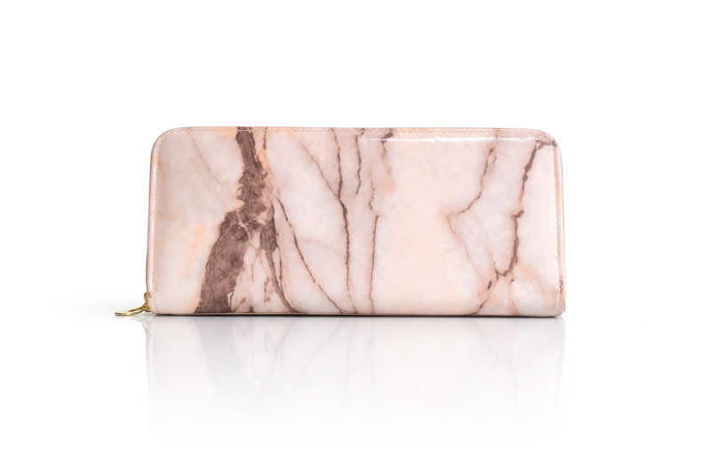 Elegant Marble Print Zip Around Women’s Wallet – Peach Beige