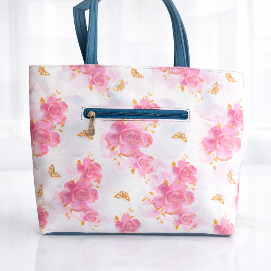 Elegant Pink Rose Print Tote Handbag for Women
