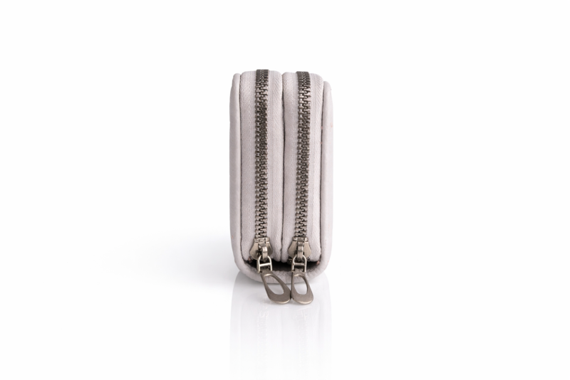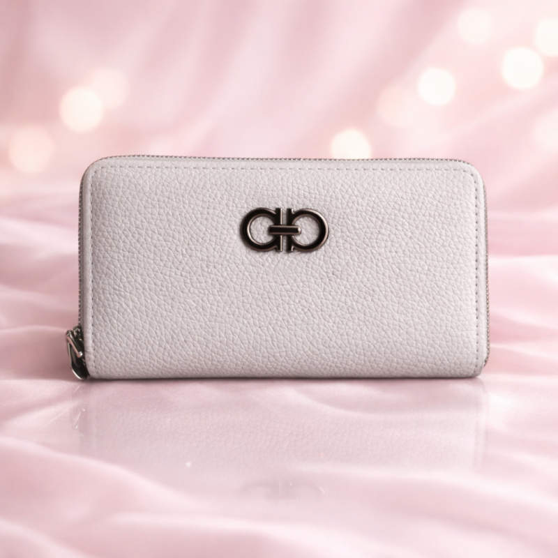 Premium white textured women’s zip wallet with sleek metal logo detail. Spacious, stylish and perfect for daily use, office, travel and gifting.