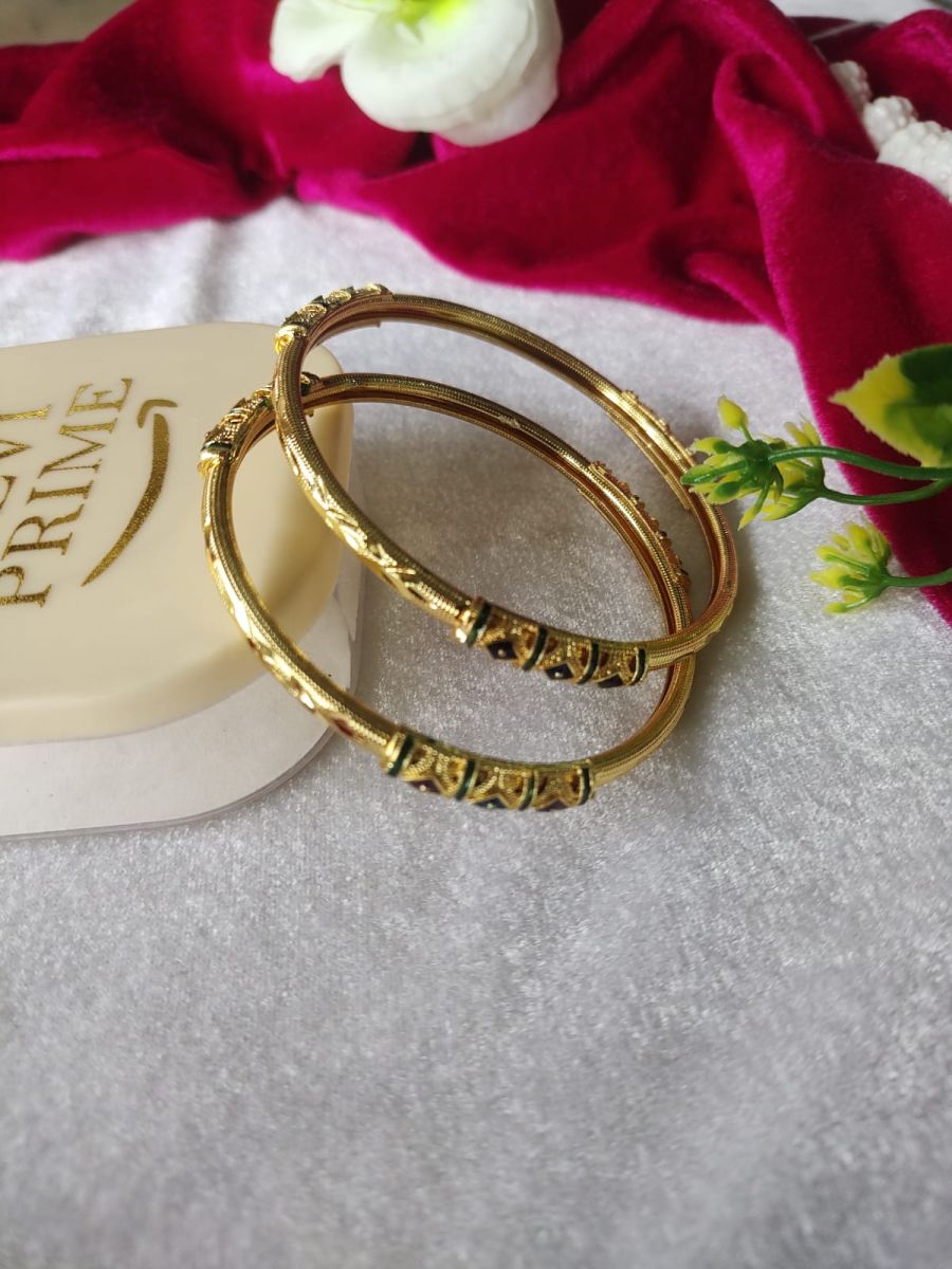 Gold Finish Designer Metal Kada Bangles (Set of 2)