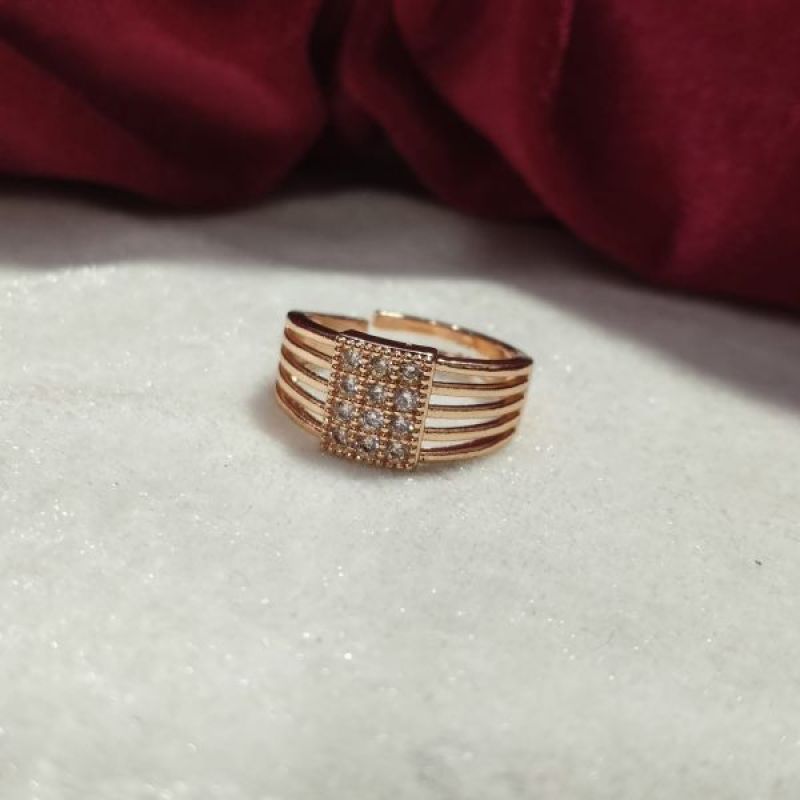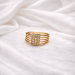 A stylish gold-tone multi-band ring featuring a square crystal-studded centerpiece. Elegant, bold, and perfect for party wear or statement styling.