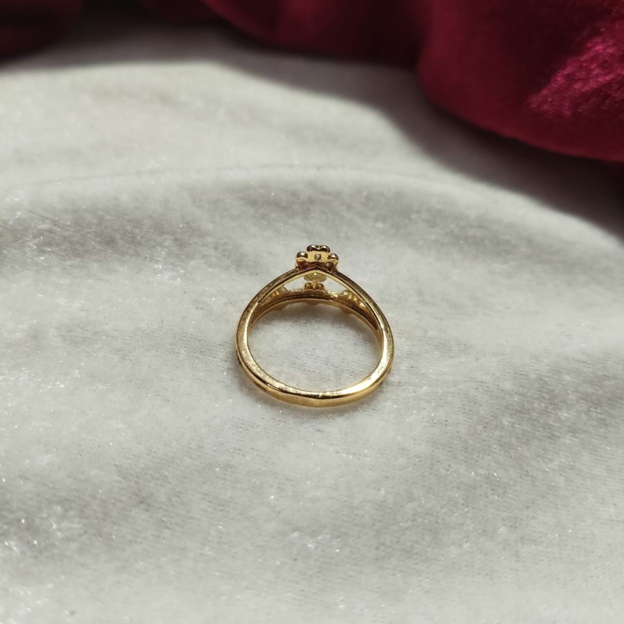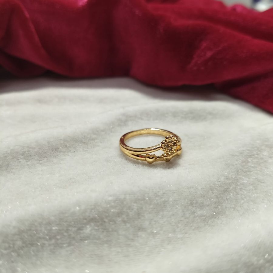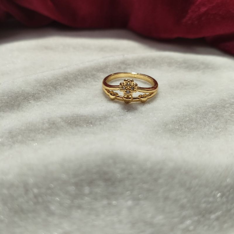 A delicate gold plated floral ring studded with sparkling AD stones, perfect for everyday elegance and subtle party wear.