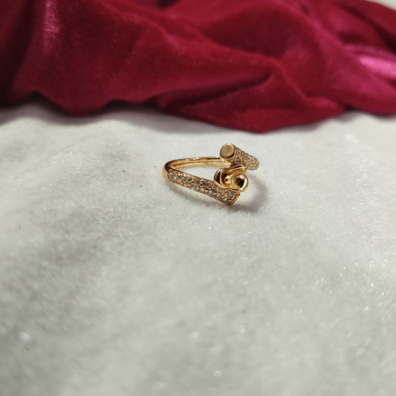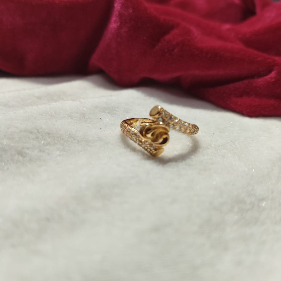A stylish gold plated open swirl ring with sparkling AD stones, perfect for modern daily wear and party looks.