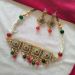 Green Meenakari Kundan Choker Necklace Set with Red-Green Beads Drops