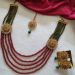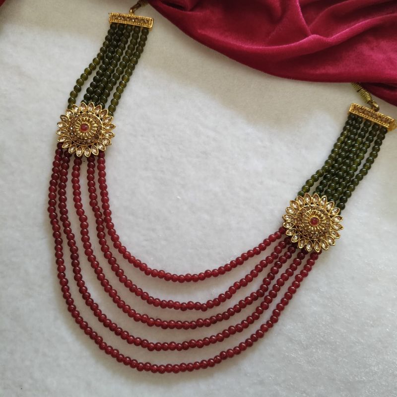 Green & Red Multi-Strand Beaded Necklace Set with Floral Motifs