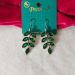 Green Stone Leaf Drop Earrings (Oxidised Finish)