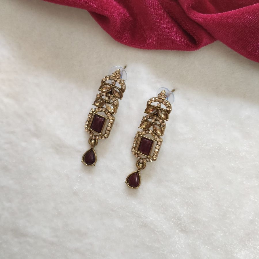 Maroon Stone Kundan Style Necklace Set with Drop Earrings