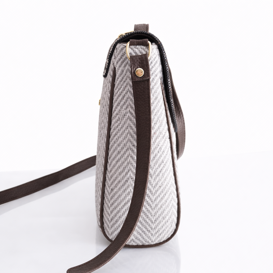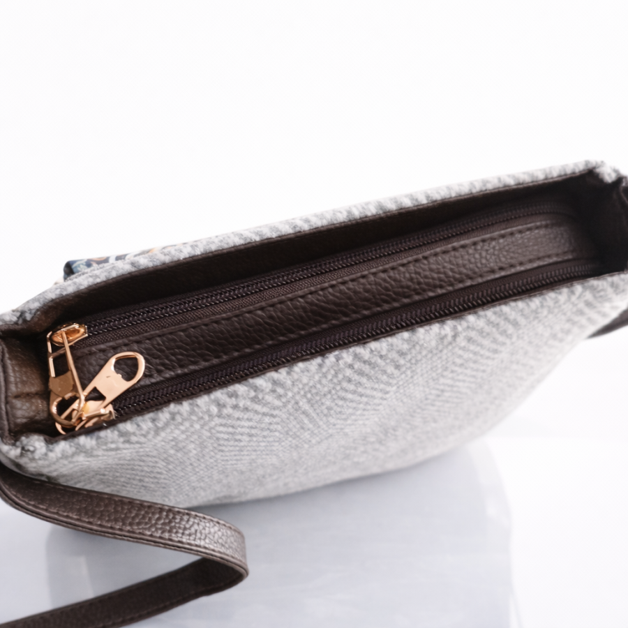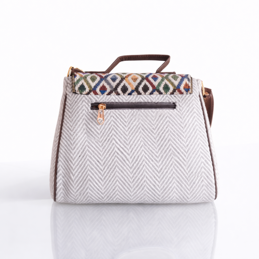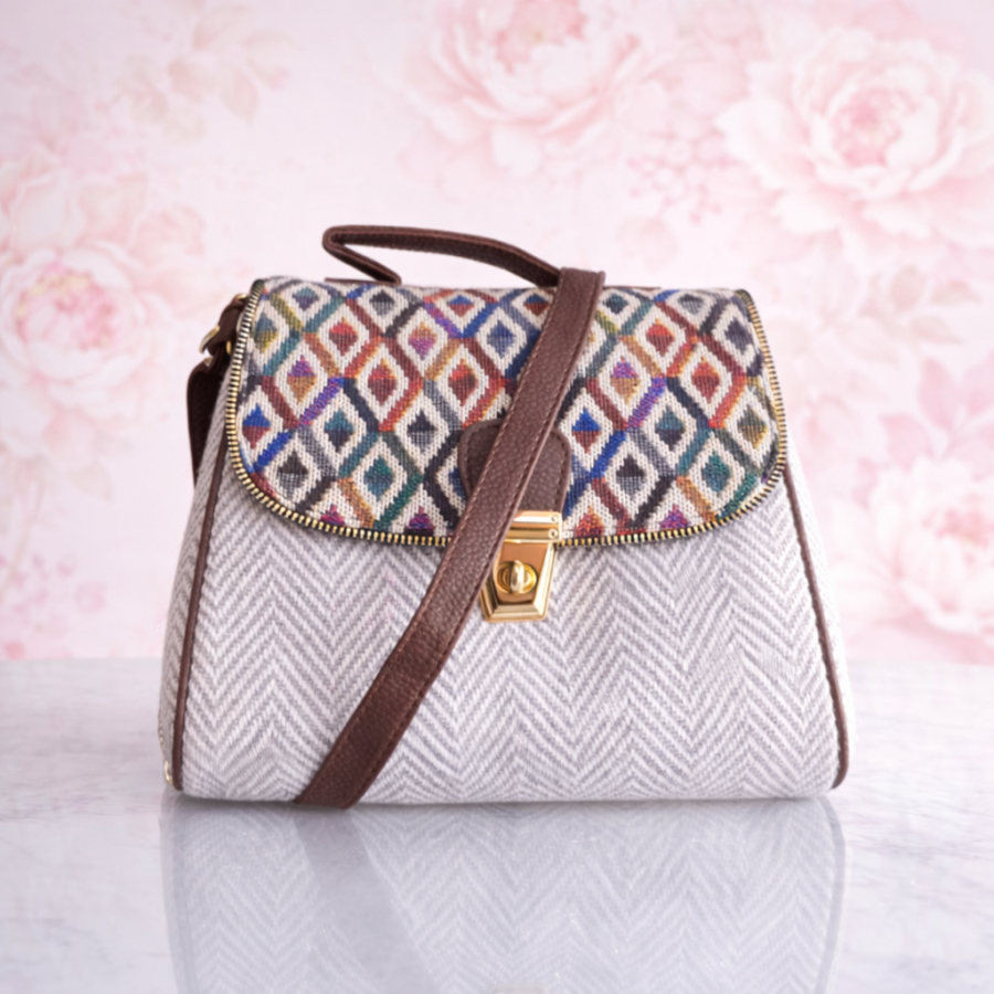 Multicolor Diamond Pattern Sling Handbag with Gold Lock & Brown Strap