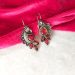 Oxidised Peacock Leaf Drop Earrings with Red Stone