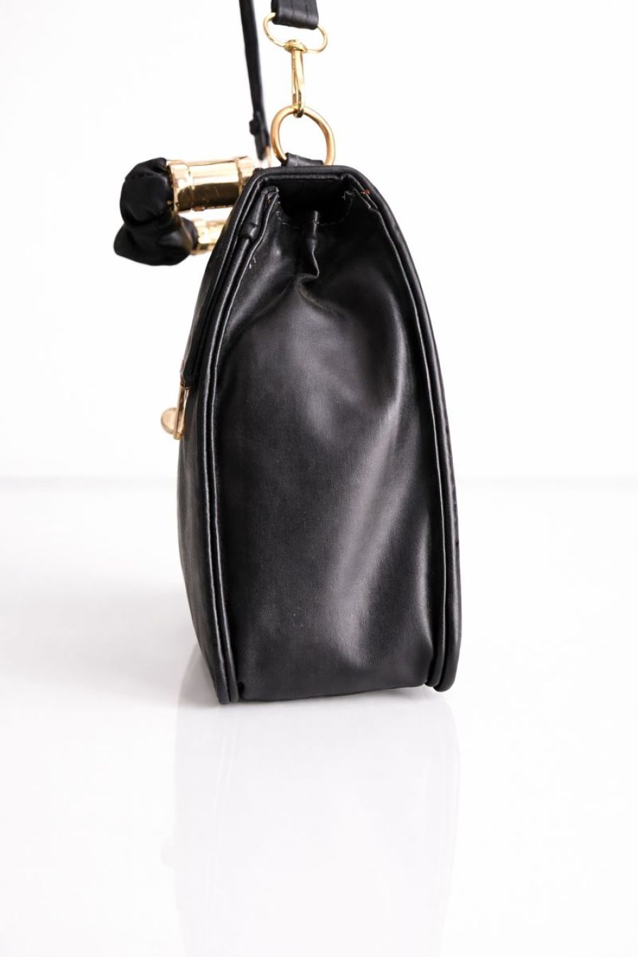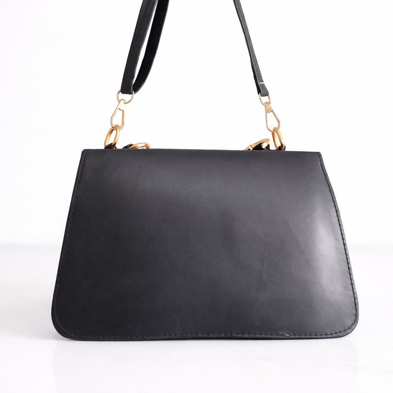 A stylish premium black handbag for women with a golden lock closure and ruched handle design. Perfect for parties, office, and special occasions.
