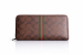 Premium Brown Monogram Stripe Women’s Zip Around Wallet