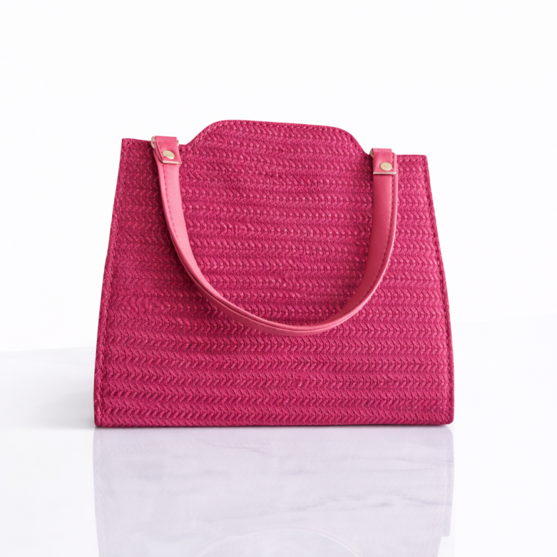 Premium Magenta Textured Women’s Handbag with Gold Accent Handles
