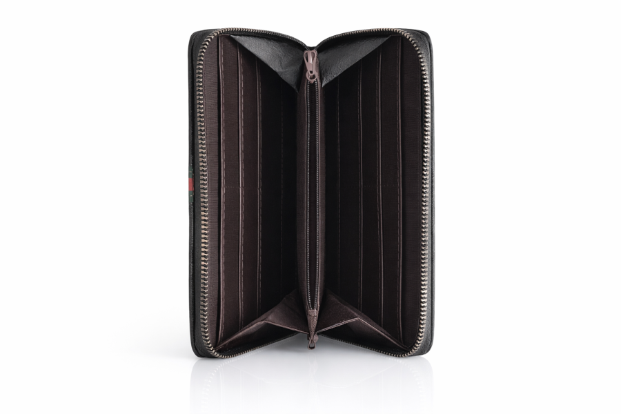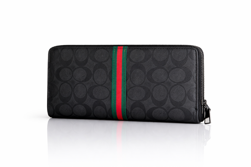 Premium Monogram Stripe Women’s Long Zip Wallet (Black Edition)