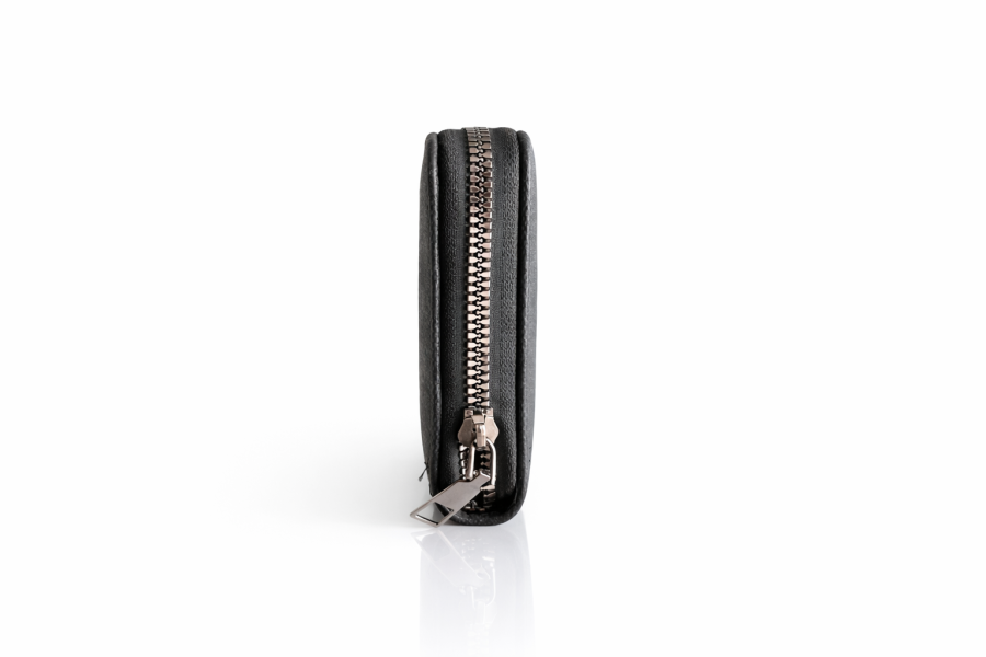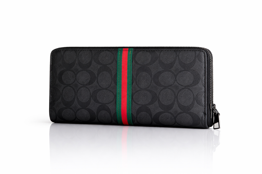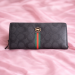 Stylish black monogram long wallet with center stripe design and zip closure. Spacious, durable and perfect for daily use, travel and gifting