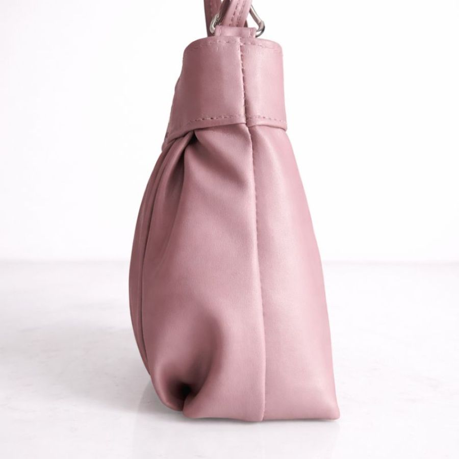 A stylish pleated pink handbag for women with a classy modern design. Perfect for daily use, office wear, and special occasions.