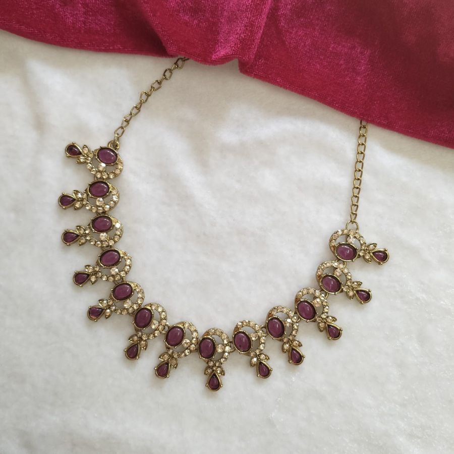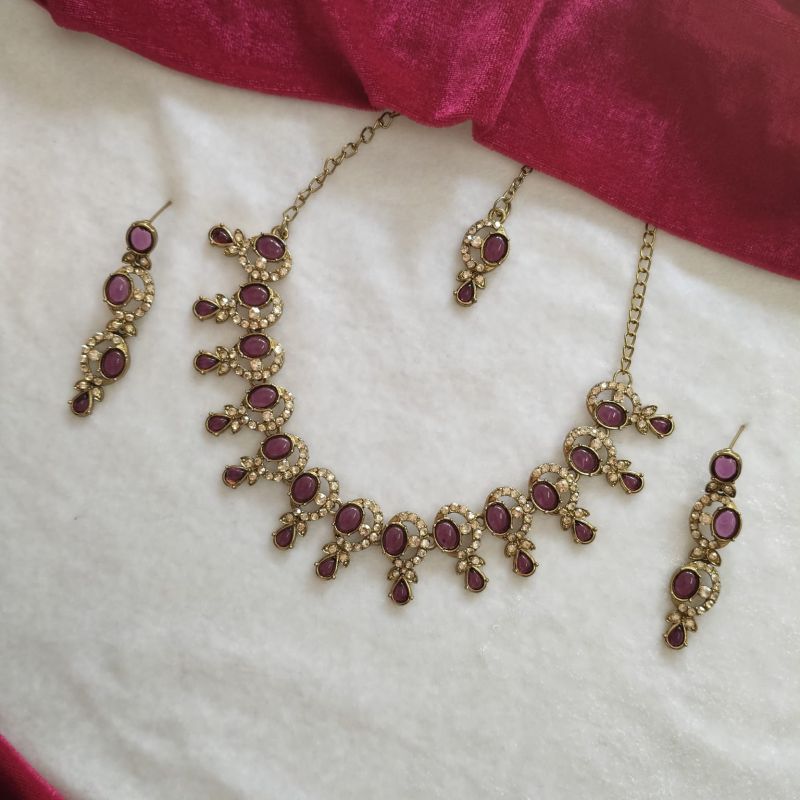 Purple Stone Kundan Style Necklace Set with Matching Earrings