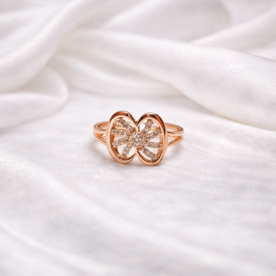 Elegant rose gold heart-shaped ring featuring a sparkling floral crystal design at the center. Perfect for daily wear, gifting, and special occasions.