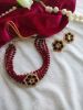 Elegant maroon beads choker necklace set with floral kundan centerpiece and matching earrings – perfect for weddings, festive and party wear looks.