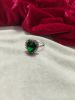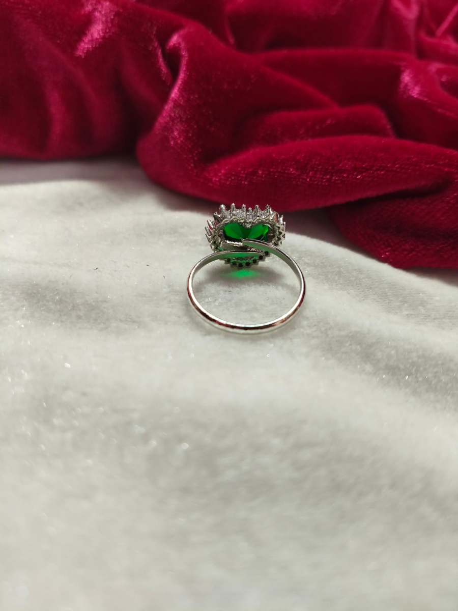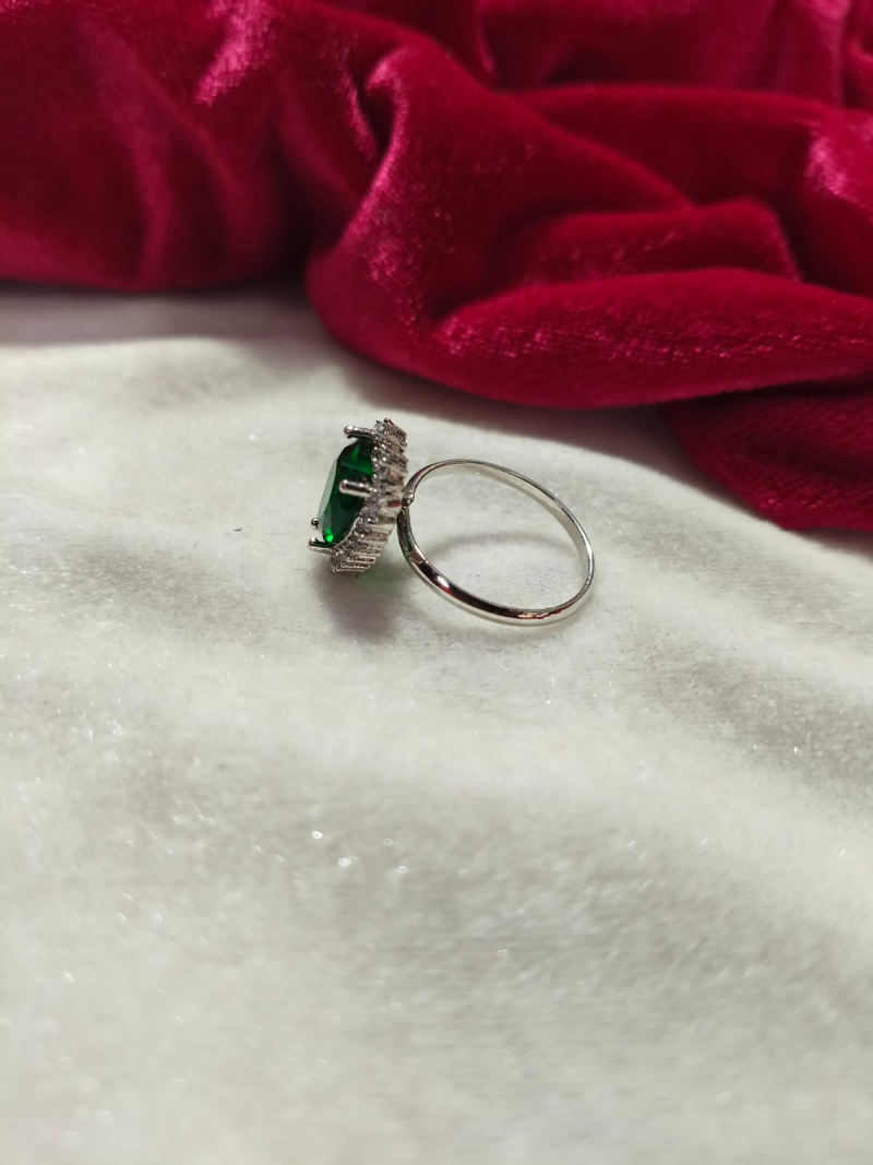 Silver Emerald Green Halo AD Stone Ring for Women (Silver Finish)