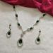 Silver Finish Green Stone Teardrop Designer Necklace Set with Earrings