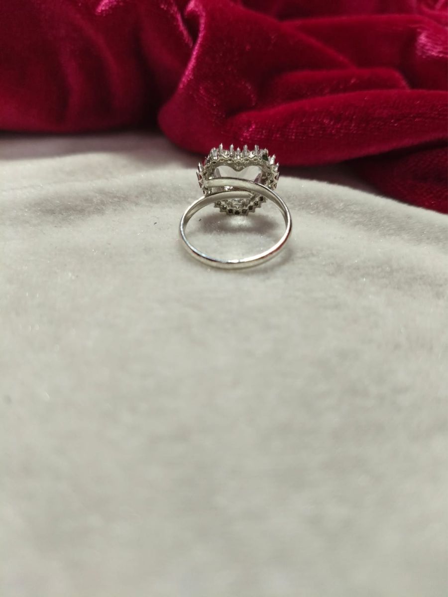 Silver Heart Shape Crystal Halo AD Ring for Women (Silver Finish)