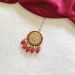 Elegant white beaded kundan necklace set featuring circular gold-tone kundan motifs with red bead drops, perfect for weddings and festive wear.