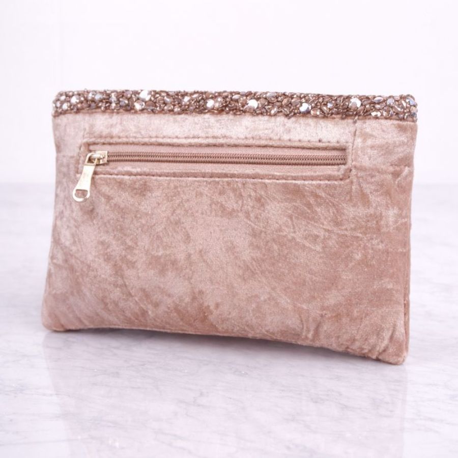 Women’s Beige Velvet Sequin Party Wear Envelope Clutch Bag