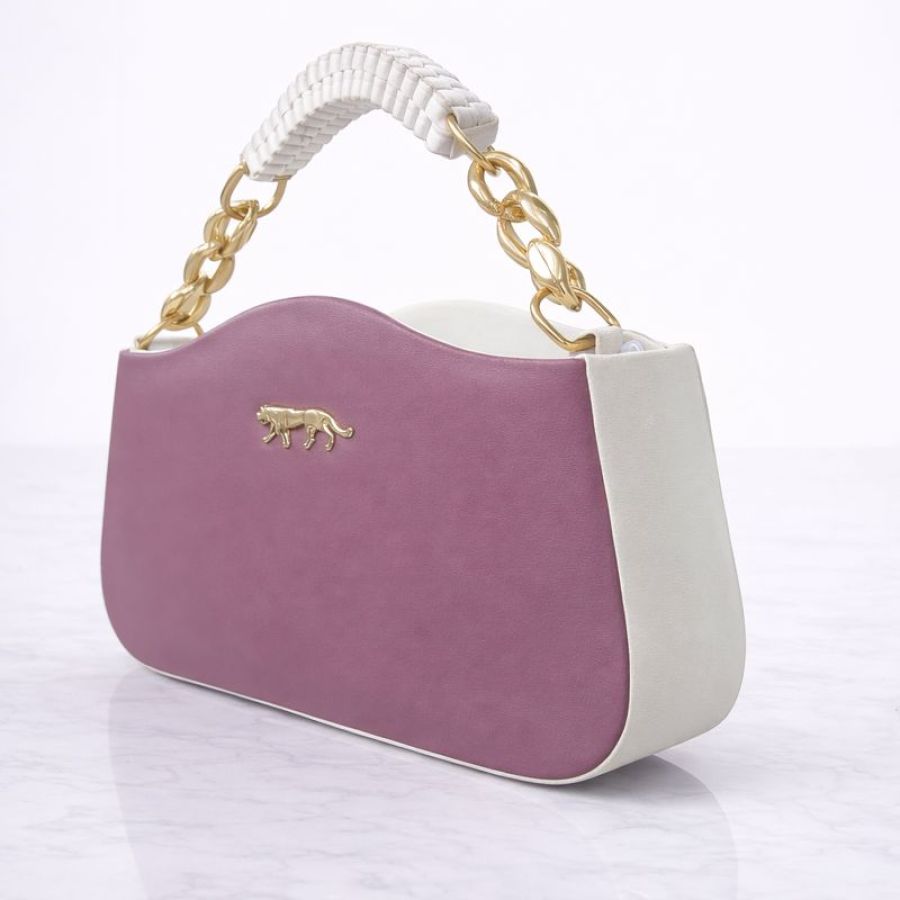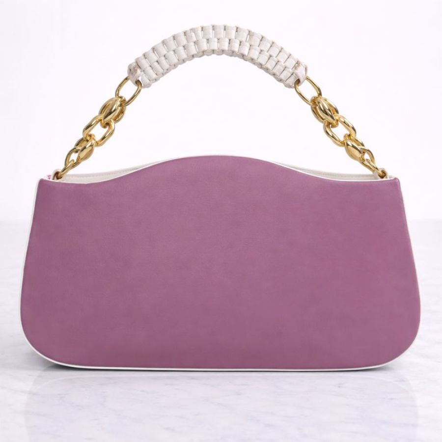 A trendy purple handbag with a braided top handle and gold chain detailing, perfect for casual outings, parties, and daily fashion use.